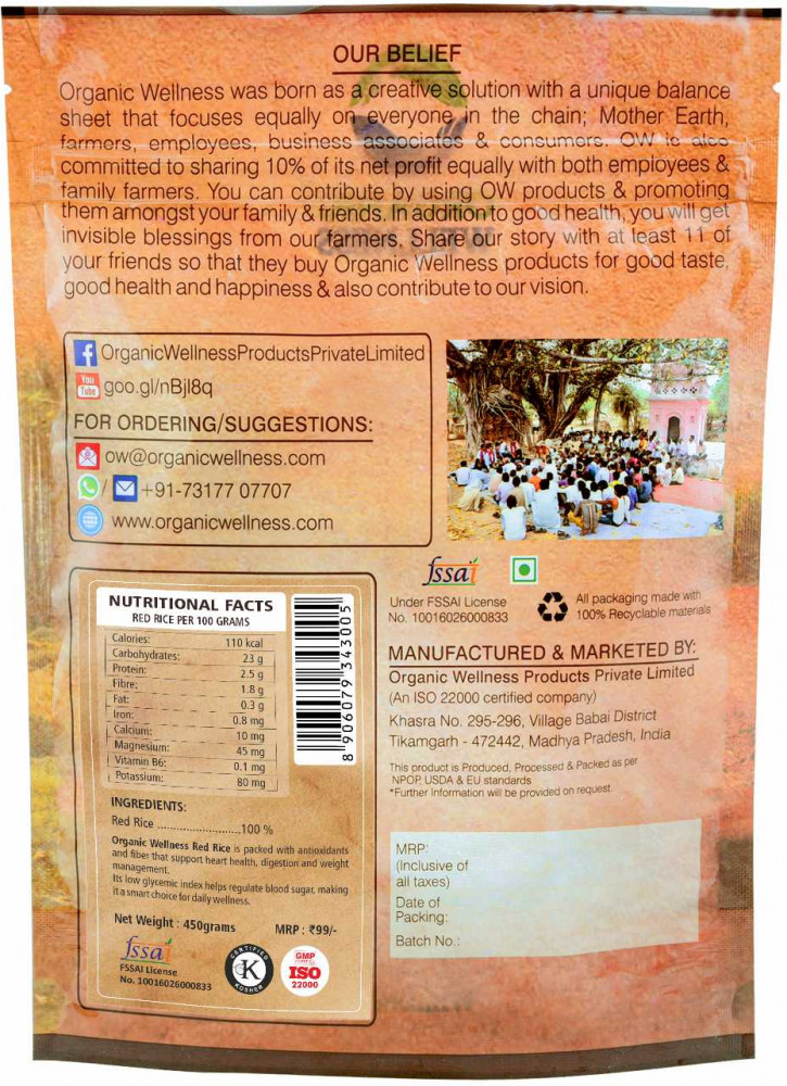 Красный рис Organic Wellness — это питательный и полезный продукт объемом 450 г, который станет отличным дополнением вашего рациона. Этот сорт риса богат белком и клетчаткой, что делает его идеальным выбором для поддержания здоровья и энергии на протяжении всего дня.
