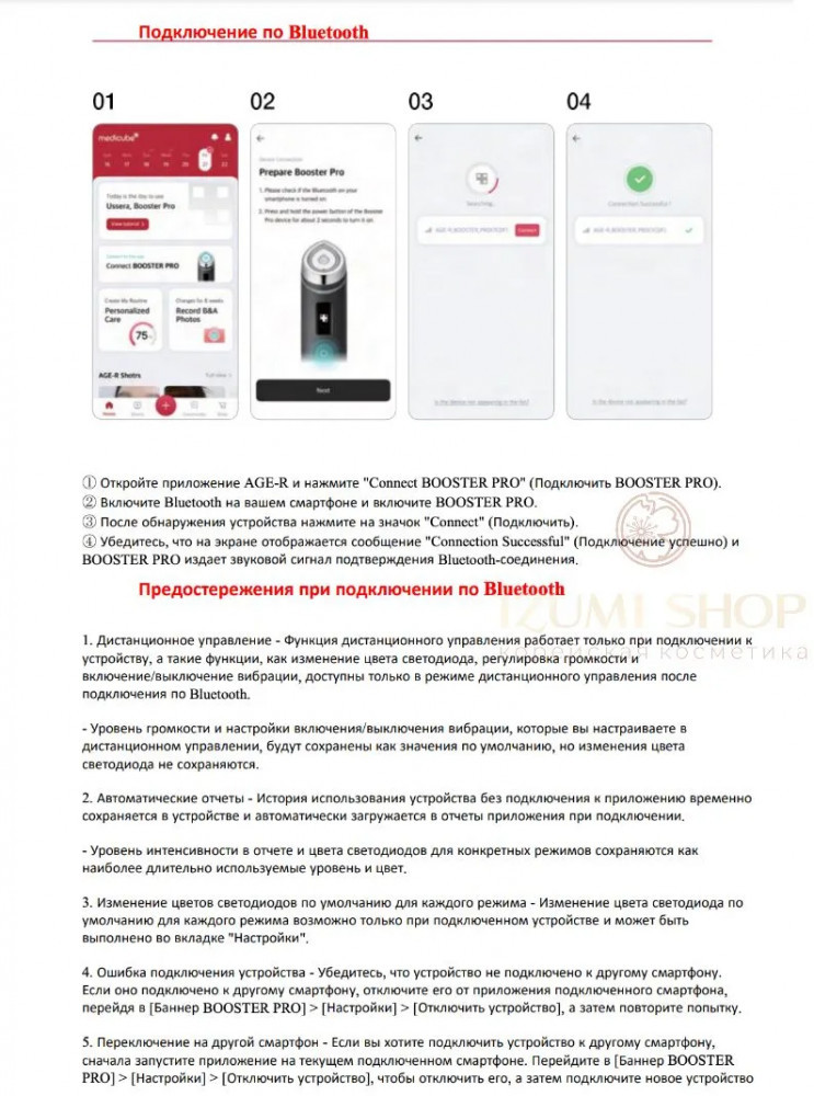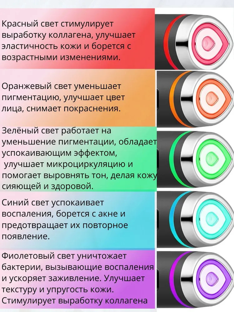 Внимание! 5 режим (фиолетовый) можно активировать в официальном приложении Medicube по QR-коду в инструкции к аппарату |