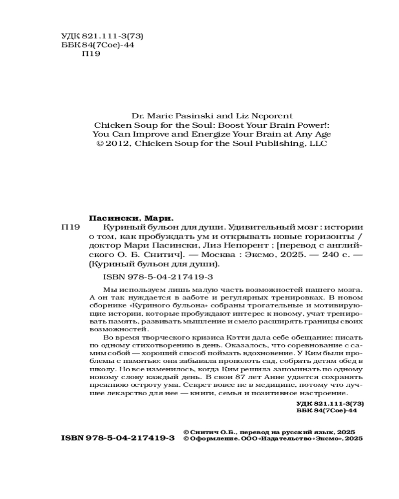 Куриный бульон для души. Удивительный мозг. Истории о том, как пробуждать ум и открывать новые горизонтыЛиз Непорент, Мари Доктор Пасински новинка -20%