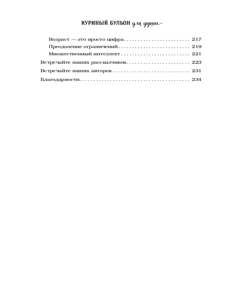 Серия: Куриный бульон для души (обложка) В детстве, когда вы болели, ваша бабушка давала вам куриный бульон. Сегодня питание и забота нужны вашей душе. Маленькие истории из «Куриного бульона» исцелят душевные раны и укрепят дух, дадут вашим мечтам новые крылья и откроют секрет самого большого счастья — счастья делиться и любить. Возможности человеческого мозга безграничны. Словно произведение искусства в процессе создания, он непрерывно меняется под воздействием прожитого опыта. Новый сборник «Куриного бульона» — это вдохновляющая коллекция историй о смелости пробовать, об открытости новому и тренировке ума в любом возрасте.  |
