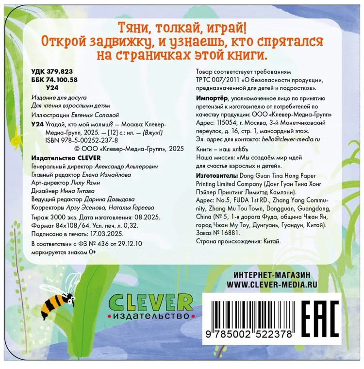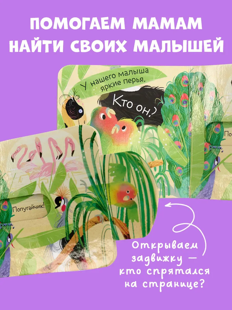 Серия: Вжух! Книжка «Угадай, кто мой малыш?» поможет малышу выучить новые слова и развить мелкую моторику. Она понравится детям, которые любят играть в «ку-ку, кто там?». |