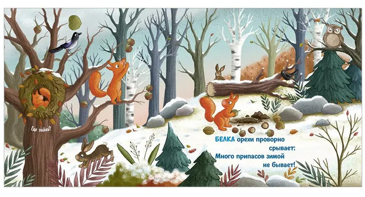 Серия: Книжки-картонки Книжка для малышей «Зима в лесу» расскажет маленьким читателям о том, как жители леса готовятся к зиме. Кто впадает в спячку, кто запасается орешками, кто прячется поглубже в норки, а кто не боится холодов благодаря своей пушистой рыжей шубке?