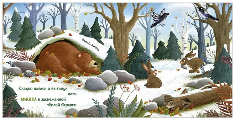 Ритмичные простые стихи этой книги для детей легко запомнить и выучить даже малышу, ведь перевод Clever книги сделала талантливая писательница Елена Фельдман. «Зима в лесу» — нежная и добрая первая книга малыша, а еще отличный новогодний подарок для детей, которые любят сказки для малышей, книги для малышей, сказки для детей в стихах, книжки для малышей о животных.
