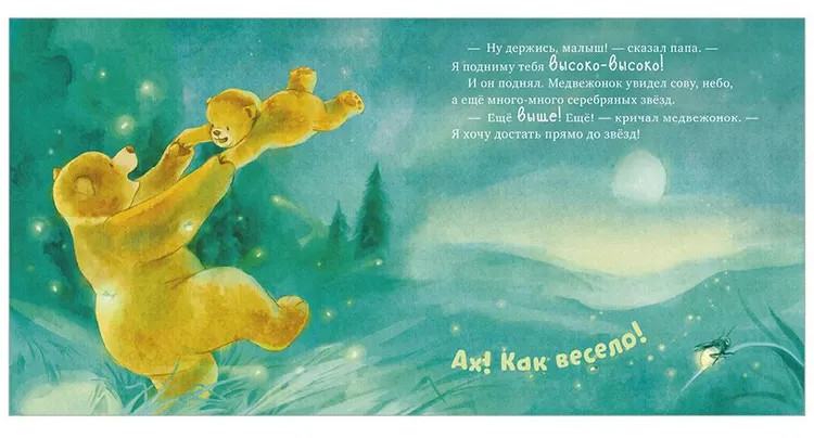 У маленького медвежонка самый лучший папа — сильный, смелый и заботливый. Однажды они отправляются в путешествие: малыш мечтает вырасти и исследовать мир вокруг, дотянуться до птичек, бабочек, дойти до самой высокой горы. Как же поможет ему папа?