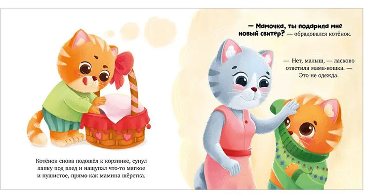 Серия: Семейные сказки Мама принесла котенку красивую корзинку. Что же внутри? Вкусный завтрак? Или новый свитер? Сюрприз от мамы оказался еще интереснее!  |
