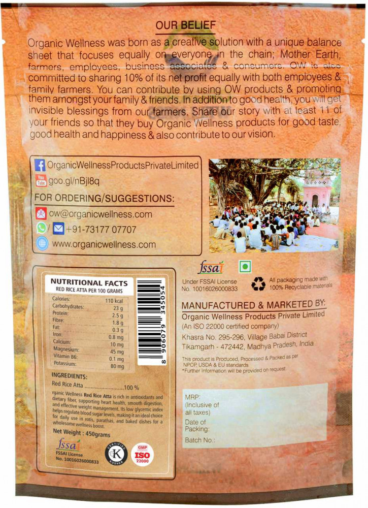 Процесс производства муки из красного риса контролируется нашей командой, что гарантирует высокое качество и безопасность продукта. Organic Wellness использует только органические ингредиенты, без добавления искусственных добавок и консервантов.