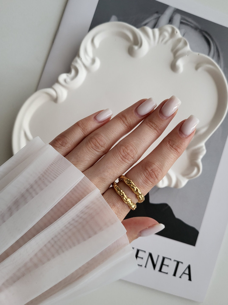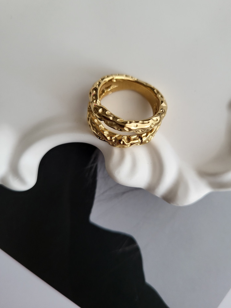 Стильное кольцо из ювелирной стали с покрытием позолоты 18К. Можно носить соло или комбинировать с другими кольцами, создавая индивидуальный образ. Не темнеет, не боится воды и не вызывает аллергии.