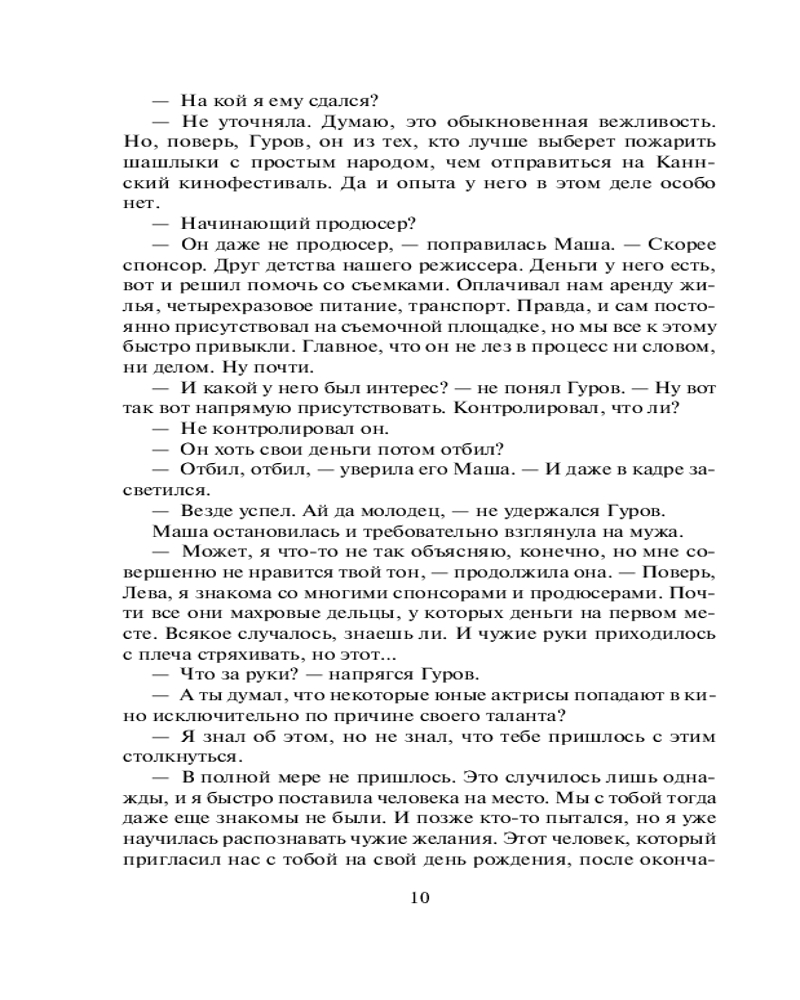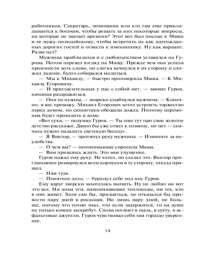 Серия: Черная кошка Полковник МВД Лев Гуров приглашен на юбилейный вечер маститого кинопродюсера, а в прошлом известного криминального авторитета Михаила Маковского. Во время застолья юбиляр просит сыщика помочь ему вернуть домой двадцатилетнюю дочь, которая связалась с плохой компанией и ушла неизвестно куда. На следующий день Маковского находят повешенным в своем гараже. Жена утверждает, что до суицида отца довела непутевая дочь. Гурову эта версия кажется неубедительной. Его сомнения усиливаются после того, как экспертиза установила, что жертва сначала была застрелена, а затем убийца подвесил тело в петле. Сыщик решает покопаться в бандитском прошлом Маковского, и вскоре на свет появляется одна очень неприглядная история...  |