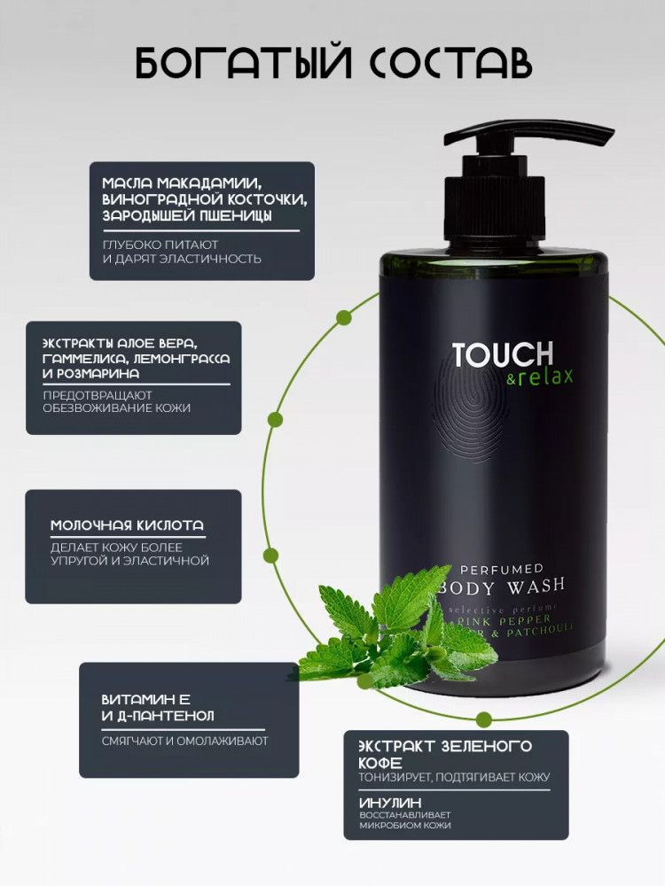 TOUCH&Relax Гель для душа парфюмированный «Розовый перец, ветивер и пачули»