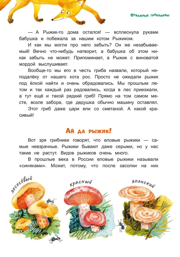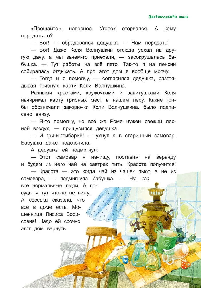 💳 Оплатить за товар можно при получении 🇰🇿 Есть бесплатная доставка по Казахстану 🎁 Копите бонусы с каждой покупки Рома, его дедушка, бабушка и кот-гриболов Рыжик — очень находчивая семья! Рома повсюду находит грибы, кот находит приключения на свою усатую голову, бабушка находит их обоих и каждый раз отправляет помогать ей на огороде, а дедушка всегда находит выход из любой ситуации. А ещё он знает о грибах столько интересного, что после его историй тут же хочется схватить корзинку и побежать в лес. Чтобы не бегать далеко, Ромин дед покупает заброшенную дачу в Лукошкине. Теперь, чтобы бабушка не сбежала в город, всем придётся как следует постараться. Ведь если Рома не соберёт лучший грибарий в классе и не познакомится с таинственной девочкой из соседнего дома, лето пройдёт зря. Настоящий грибной вождь такого точно не допустит! |