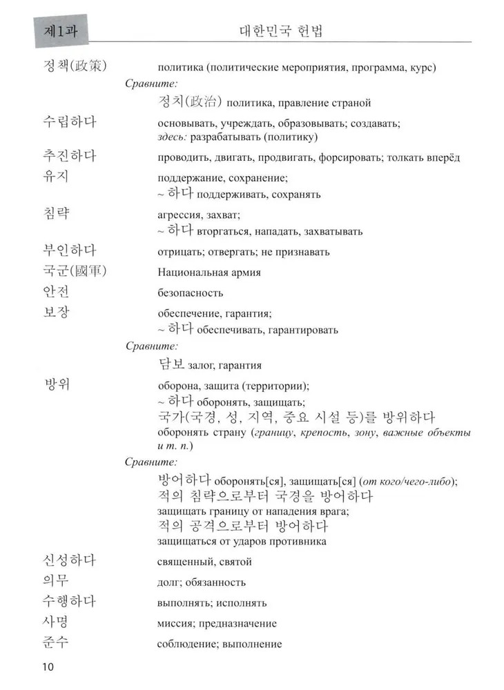 Данное учебное пособие предназначено для широкой аудитории: для студентов старших курсов российских университетов, где преподаются корееведческие специальности, для учащихся курсов на продвинутом уровне, а также для желающих расширить свои знания по корейскому языку Одна из задач данного пособия — научить студентов работе с текстом общественно-политической тематики, познакомить с основными способами решения переводческих задач. Также пособие знакомит студентов с особенностями развития Кореи в период современной истории, с событиями, повлиявшими на судьбу корейской нации. Учебные тексты, используемые в пособии, а также текстовой материал упражнений заимствованы из корейских школьных учебников по политике и обществоведению и других корейских и российских информационных материалов. |