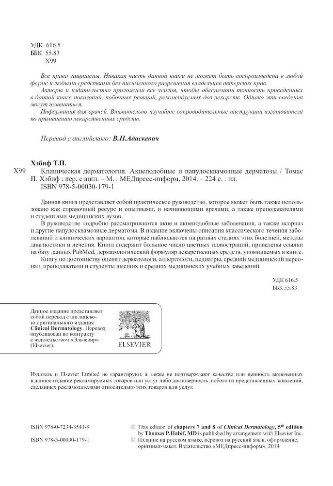 Данная книга представляет собой практическое руководство, которое может быть также использовано как справочный ресурс и опытными, и начинающими врачами, а также преподавателями и студентами медицинских вузов. В руководстве подробно рассматриваются акне и акнеподобные заболевания, а также псориаз и другие папулосквамозные дерматозы. В издание включены описания классического течения заболеваний и клинических вариантов, которые наблюдаются на разных стадиях этих болезней, методы диагностики и лечения. Книга содержит большое число цветных иллюстраций, приведены ссылки на базу данных PubMed, дерматологический формуляр лекарственных средств, упоминаемых в книге. Книгу по достоинству оценят дерматологи, аллергологи, педиатры, средний медицинский персонал, преподаватели и студенты высших и средних медицинских учебных заведений. |