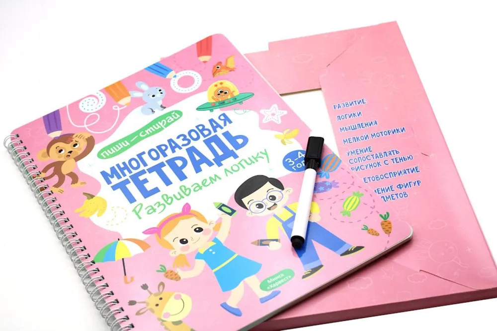 Многоразовая тетрадь с маркером. Развиваем логику+186