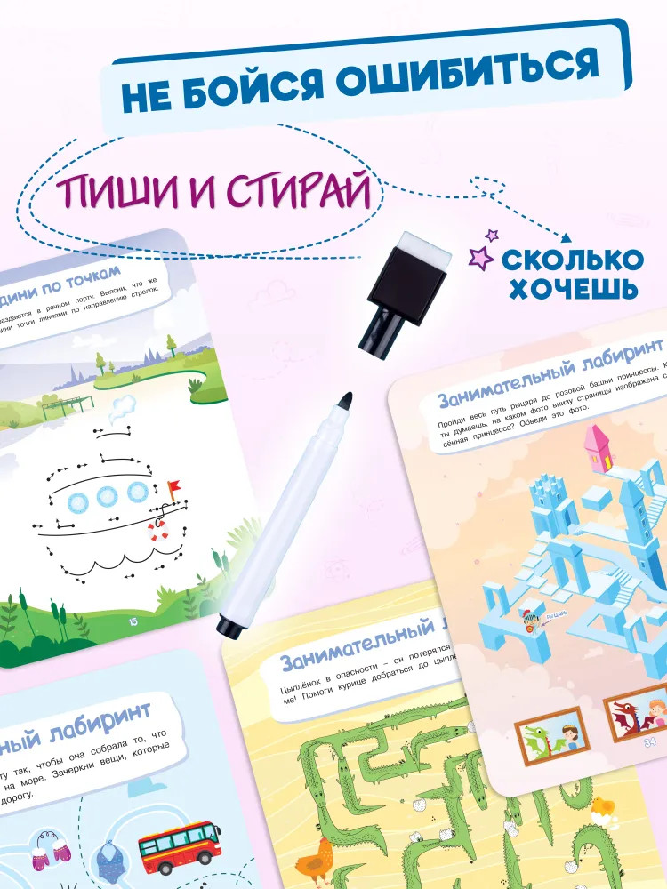 Многоразовая тетрадь с маркером. Лабиринты и линии+186