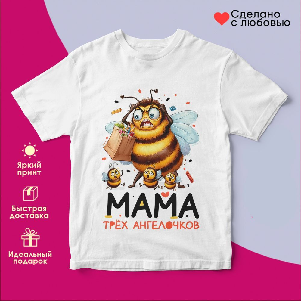 TopPoshiv Футболка с принтом «Мама трех ангелочков»