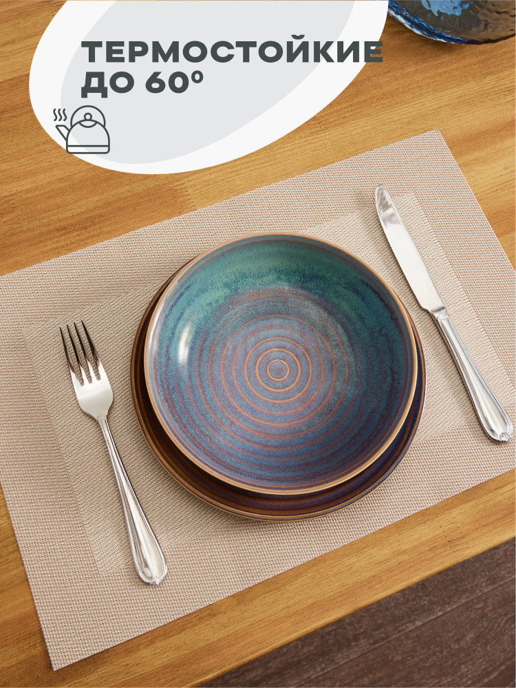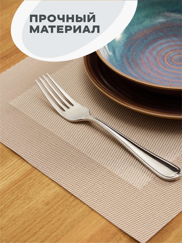Создайте уют и элегантность за вашим столом с набором сервировочных плейсматов от бренда «Унисон». Эти стильные пластиковые салфетки на стол придают особый шарм любой трапезе. В комплект входит четыре плейсмата размером 45×30 см, что идеально подходит для сервировки как повседневных, так и праздничных обедов. Пластиковые салфетки на стол легко чистить — достаточно протереть их влажной тканью, и они снова будут готовы к использованию. Прочные и долговечные, они защитят стол от пятен и повреждений, сохраняя его безупречный вид. Эти сервировочные плейсматы отлично сочетаются с разной посудой и текстилем, позволяя вам разнообразить сервировку по своему вкусу. Салфетки не только добавят эстетику вашему столу, но и обеспечат практичность, что делает их незаменимым элементом в обиходе. Прекрасный выбор для тех, кто ценит стиль и удобство в каждом элементе домашнего интерьера.