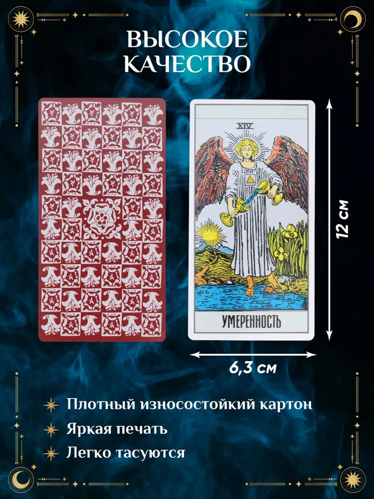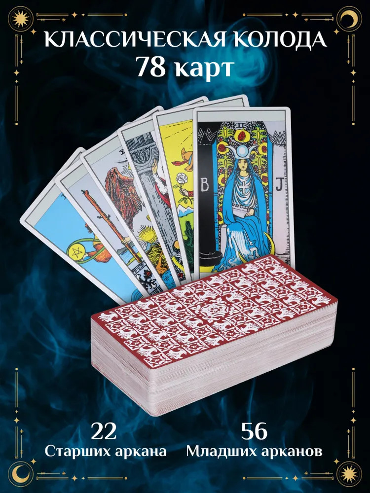 Набор Таро прекрасно подойдёт как для начинающих исследователей Таро, так и для опытных практиков. Таро карты упакованы аккуратно вместе с удобным мешочком, что делает их транспортировку простой и безопасной. Это также поможет сохранить эффективность и энергию вашего маленького мистического инструмента. Лёгкий доступ к колоде позволит вам проводить расклады где угодно, создавая особую атмосферу для гадания.При помощи гадальных карт Таро можно разобраться в своём прошлом, увидеть со стороны ситуацию в настоящем, заглянуть в будущее, предсказать события, которые могут повлиять на судьбу. В наборе 22 старших аркана, 56 младших, инструкция по гаданию и предсказанию. |
