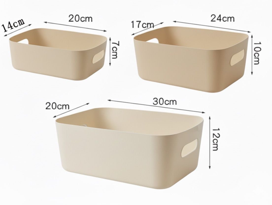 Практичное и стильное решение для поддержания порядка в доме и офисе. Универсальные контейнеры подходят для хранения косметики, канцелярии, игрушек, белья, кухонных принадлежностей и других мелочей. Изготовлены из прочного и безопасного пластика (PP), не впитывают запахи и легко моются. Контейнеры компактно вставляются друг в друга, что удобно при хранении, а эргономичные ручки обеспечивают комфортный перенос. Современный минималистичный дизайн делает их эстетичным дополнением любого интерьера. В набор входят три контейнера разного размера — большой, средний и маленький — в нежно-бежевом цвете. |