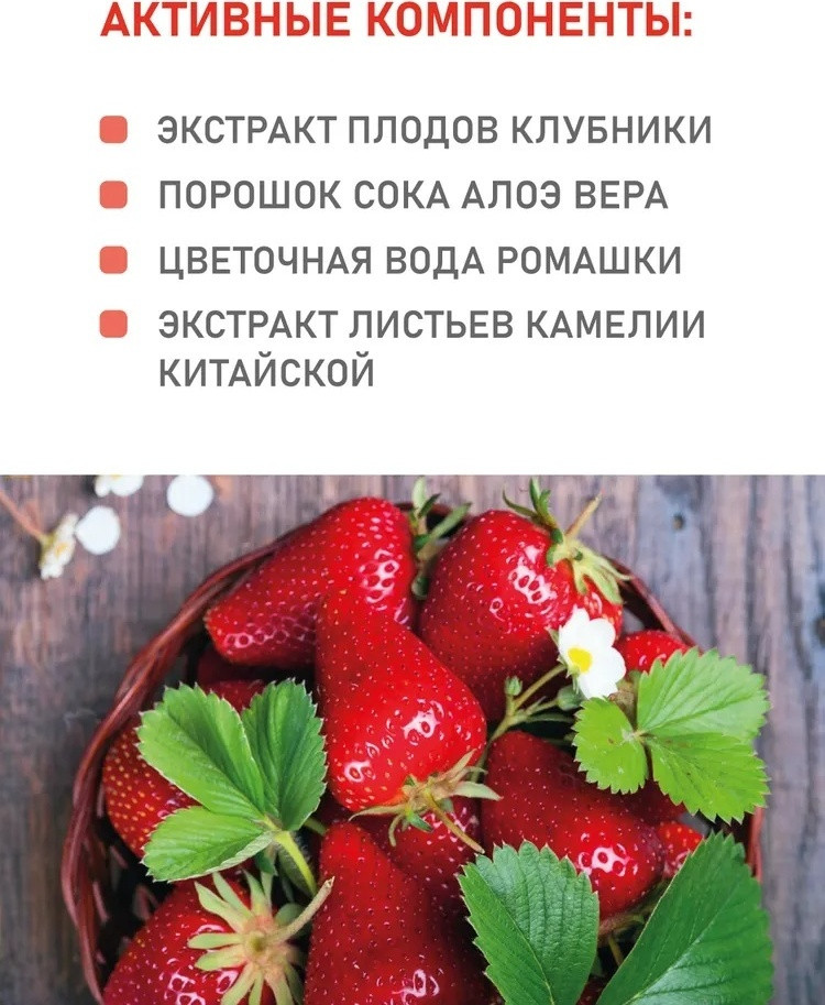 Aqua (Water), Glycerin, Silica, Cellulose Gum, Sodium Benzoate, Xylitol, Fragaria Vesca (Strawberry) Fruit Extract, Aloe Barbadensis Leaf Juice Powder, Anthemis Nobilis Flower Water, Decyl Glucoside, Camellia Sinensis Leaf Extract*, Xanthan Gum, Potassium Hydroxide, Stevia Rebaudiana Extract, Aroma (Flavor), Potassium Sorbate, Citric Acid, Mica, CI 77491 (Iron Oxide).