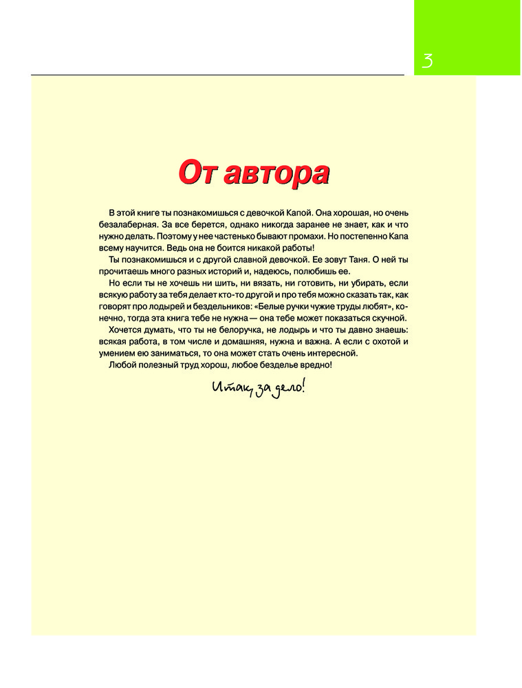 Всем родителям, у кого есть дочки младшего и среднего школьного возраста просто необходимо иметь у себя эту книгу. Здесь есть все: как научиться готовить, убирать, шить и т.д. Даже взрослым некоторые советы будут полезны. Даже ленивый ребенок, прочитав несколько страниц этой книги, обязательно захочет помочь маме.