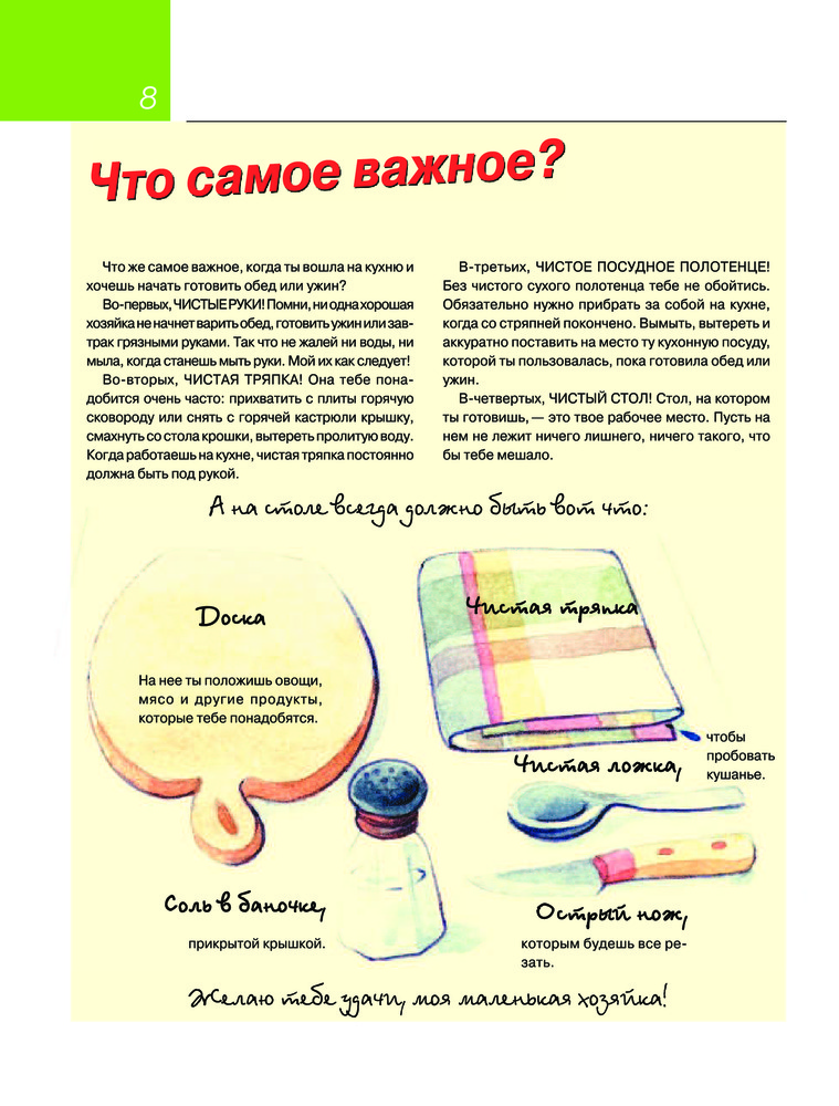 Давно мечтала о такой книге. Если бы мне лет 45 назад подарили эту книгу - я бы была счастлива. А сейчас надеюсь, что книга понравится моей внучке, которой пока только 6 лет, но она уже задаёт вопросы по готовке, уборке и вязанию.