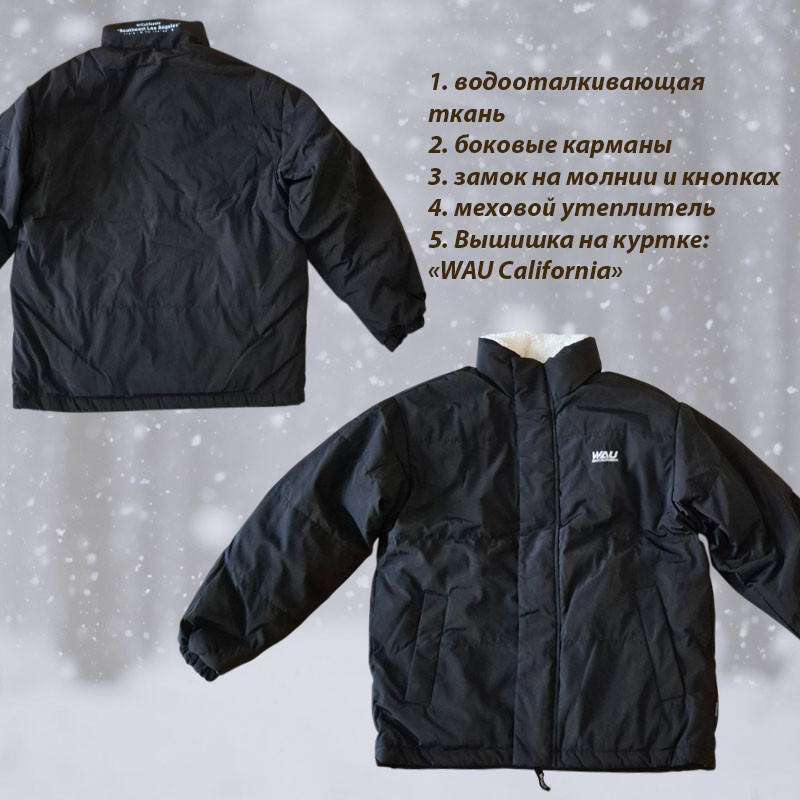 Данная куртка является двусторонней: ткань с водоотталкивающим эффектом черного цвета и белый меховой подклад. Приобретая такую куртку, вы сразу получаете в своем гардеробе две вещи, непохожие друг на друга. Куртка предназначена на теплую зиму, позднюю осень или раннюю весну. Она достаточно легкая, по стилю всегда актуальна и универсальна. Такая куртка станет заметной частью Вашего гардероба! Куртка будет согревать Вас в холодные дни и прослужит долгие годы!
