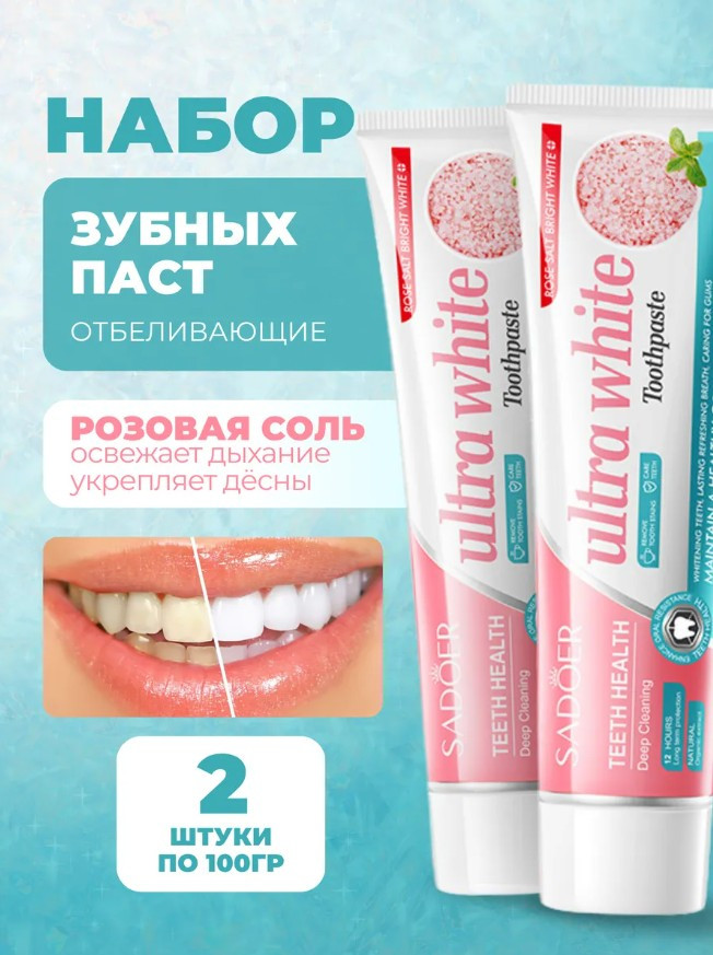 SADOER Набор зубных паст с розовой солью отбеливающих «Rose Salt Bright White Stain Removing Toothpaste»