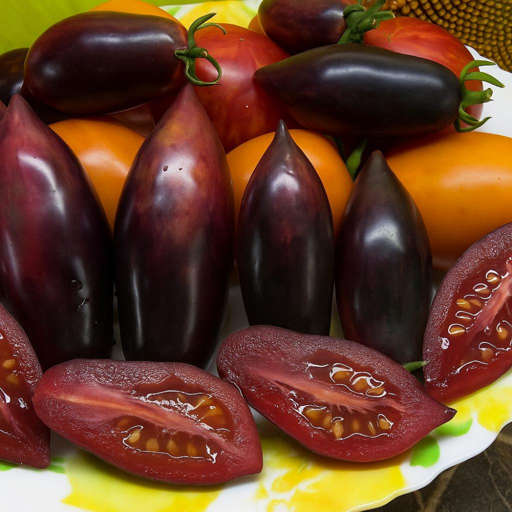 💳 Оплатить за товар можно при получении 🇰🇿 Есть бесплатная доставка по Казахстану 🎁 Копите бонусы с каждой покупки Томат «Сливка Гурман» — коллекционный индетерминантный сорт раннего созревания, отличающийся необычными декоративными плодами и устойчивостью в выращивании. Куст высокий (1,8–2 м), требует подвязки и формирования в 2–3 стебля. Плоды удлинённой формы, напоминают сливку с изящным острым носиком, массой 50–80 г. Окраска особенно эффектная: на розовом фоне проявляется насыщенное фиолетово-черное антоциановое напыление, которое становится ярче при хорошем освещении. Мякоть плотная, сочная, ароматная, вкус сладкий, сбалансированный, с характерным томатным послевкусием. |