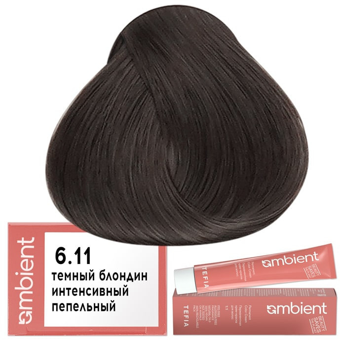 Крем-краска для волос перманентная, оттенок 6.11 Темный блондин интенсивный пепельный | Ambient | Tefia