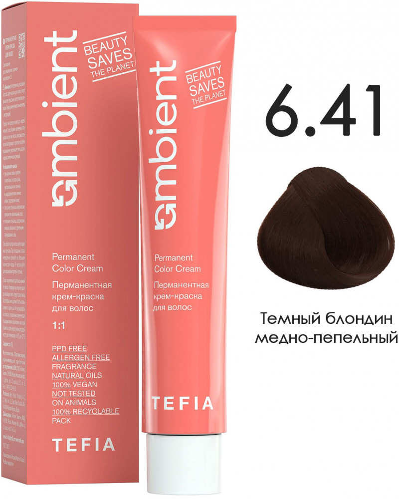 Tefia Крем-краска для волос перманентная, оттенок 6.41 Темный блондин медно-пепельный