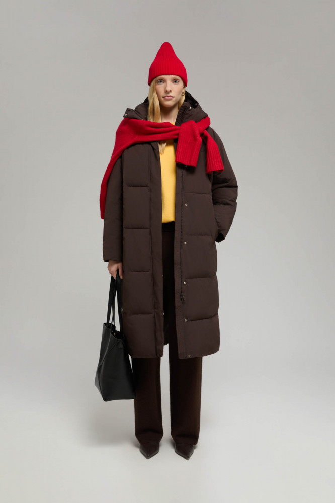 Легкий и прочный подклад обработан антибактериальной и полиуретановой пропитками, которые предотвращают развитие микрофлоры и продлевают срок службы изделия. Пальто свободного кроя с удобными цельнокроенными рукавами комфортно садится по фигуре, не сковывая движения. Съемный капюшон, воротник-стойка и внутренние манжеты на рукавах служат дополнительной защитой от ветра.