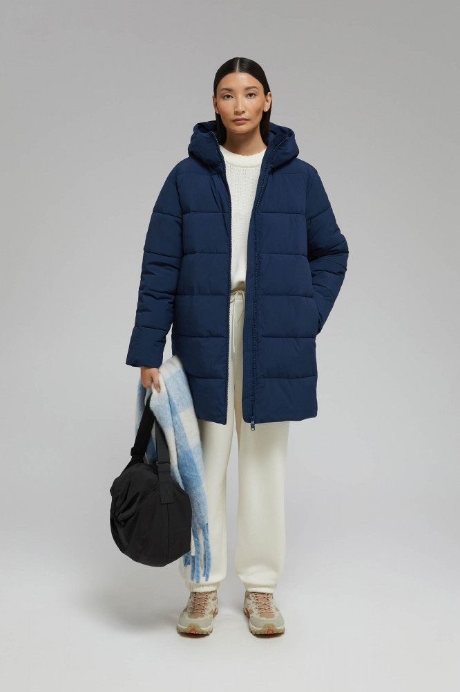 Стеганое полупальто с капюшоном — свободное и очень теплое, для комфортных образов в морозные дни. Модель выполнена из мембранной ткани, которая благодаря специальным пропиткам защищает от мокрого снега, дождя и ветра, при этом пропускает воздух и позволяет телу дышать. Ткань устойчива к загрязнениям и отличается износостойкостью.