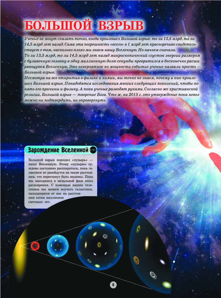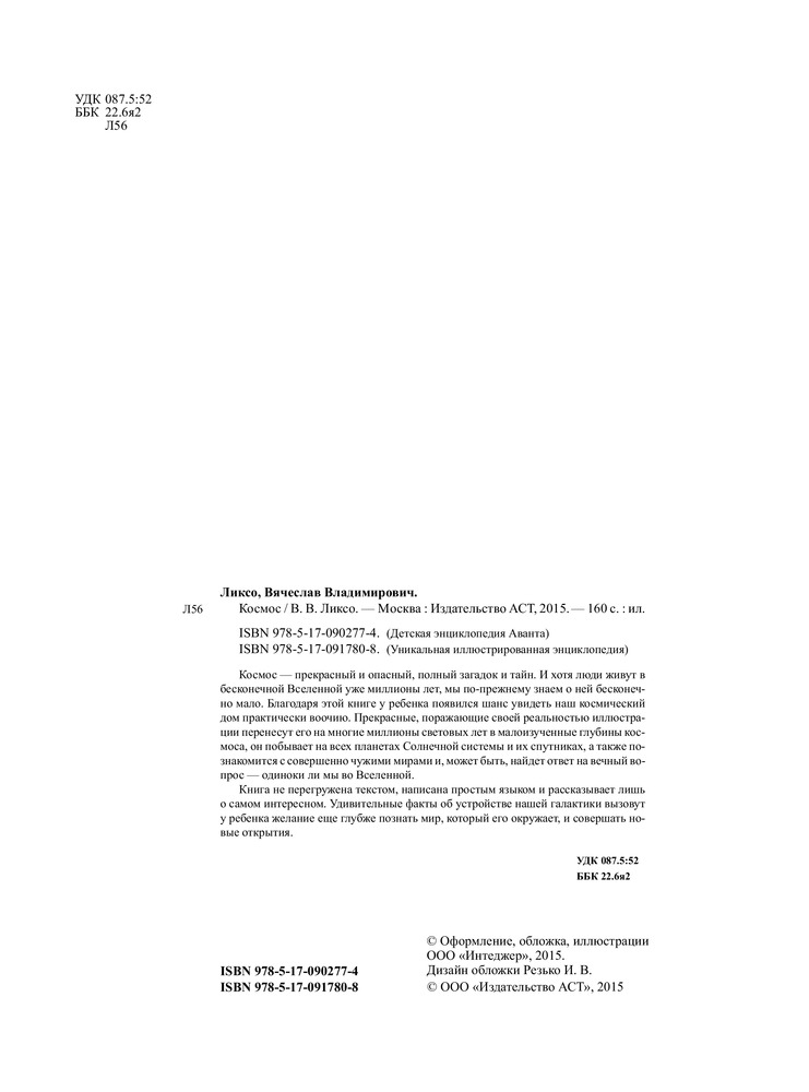 В данный момент этот товар отсутствует в продаже. Возможно, у нас найдется аналогичный или похожий товар здесь. Серия: Уникальная иллюстрированная энциклопедия Космос — загадочный, прекрасный и опасный. Каждый день здесь гибнут целые миры и рождаются миллионы новых галактик, звезд и планет. Человек живет в бесконечной Вселенной уже миллионы лет, но по-прежнему знает о ней бесконечно мало. Благодаря этой книге у ребенка появился шанс увидеть наш космический дом практически воочию. Прекрасные, поражающие своей реальностью иллюстрации перенесут его на многие миллионы световых лет в малоизученные глубины космоса, он побывает на всех планетах Солнечной системы и их спутниках, а также познакомится с совершенно чужими мирами и, может быть, найдет ответ на вечный вопрос — одиноки ли мы во Вселенной.