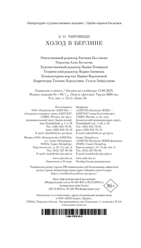 Серия: Азбука-бестселлер Берлин, 1946 год. Маленьким людям лучше не высовываться: бывшие союзники плетут интриги в борьбе за власть, а побежденный народ не гнушается никакими средствами, чтобы выжить. Но что, если, кроме тебя, восстановить справедливость больше некому? В одном из жилых домов немецкой столицы американский журналист Джейкоб Хубер находит труп молодой женщины. Отправившись за полицией, Джейкоб натыкается на советский патруль и возвращается на место уже с солдатами. Однако их встречает растерянная хозяйка: она недавно пришла домой и никакого трупа тут нет и, конечно же, не было. |