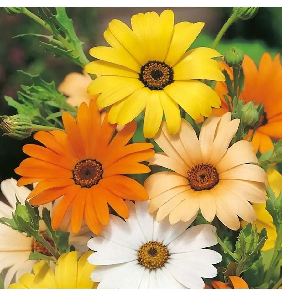 💳 Оплатить за товар можно при получении 🇰🇿 Есть бесплатная доставка по Казахстану 🎁 Копите бонусы с каждой покупки Изящные невысокие растения, высотой 30-40 см, с сильноветвистым стеблем. Листья темно-зеленые, удлиненные. Соцветия крупные, 5-7 см в диаметре, язычковые цветки белые, кремовые, оранжевые с темно-коричневым кругом у основания, трубчатые — черно-коричневые. Цветение обильное и продолжительное. Предпочитают легкие, рыхлые и умеренно влажные почвы на прогреваемых солнцем местах. Прекрасное украшение для альпинариев, бордюров, цветников, балконов, а также мавританских газонов. Цветы стоят в срезке 3-5 дней. |