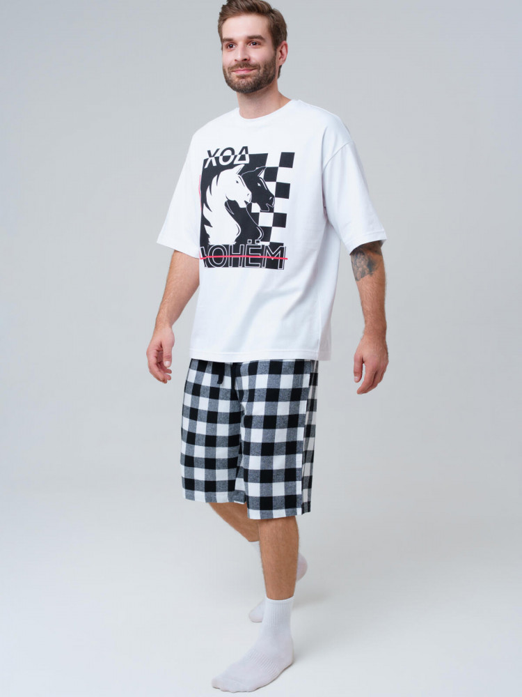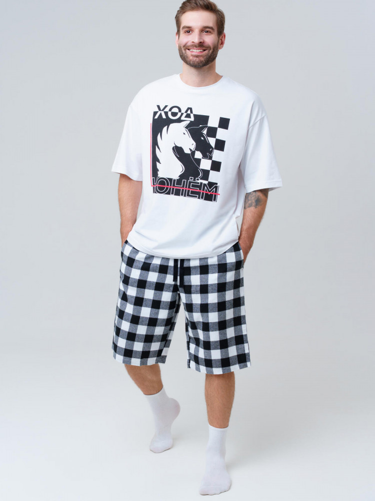 Мужской комплект от PlayToday — стильный дуэт футболки и шорт, созданный для абсолютного комфорта дома и на отдыхе. Свободный крой, мягкий трикотаж верха и лёгкие текстильные шорты делают его универсальным выбором для сна, прогулок или расслабленного вечера дома. Этот мужской комплект для сна и дома сочетает в себе практичность и стиль. Футболка выполнена из хлопкового трикотажа, который дышит и не вызывает дискомфорта. Шорты с микроначёсом мягко прилегают к телу и не теряют форму после стирки. Комплект отлично смотрится с домашними тапочками или лёгкими кедами. Его удобно брать в отпуск: футболку можно носить отдельно с джинсами, а шорты использовать как базовую деталь летнего гардероба.