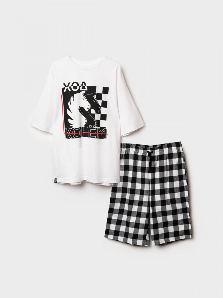 Мужской комплект от PlayToday — стильный дуэт футболки и шорт, созданный для абсолютного комфорта дома и на отдыхе. Свободный крой, мягкий трикотаж верха и лёгкие текстильные шорты делают его универсальным выбором для сна, прогулок или расслабленного вечера дома. Этот мужской комплект для сна и дома сочетает в себе практичность и стиль. Футболка выполнена из хлопкового трикотажа, который дышит и не вызывает дискомфорта. Шорты с микроначёсом мягко прилегают к телу и не теряют форму после стирки. Комплект отлично смотрится с домашними тапочками или лёгкими кедами. Его удобно брать в отпуск: футболку можно носить отдельно с джинсами, а шорты использовать как базовую деталь летнего гардероба.