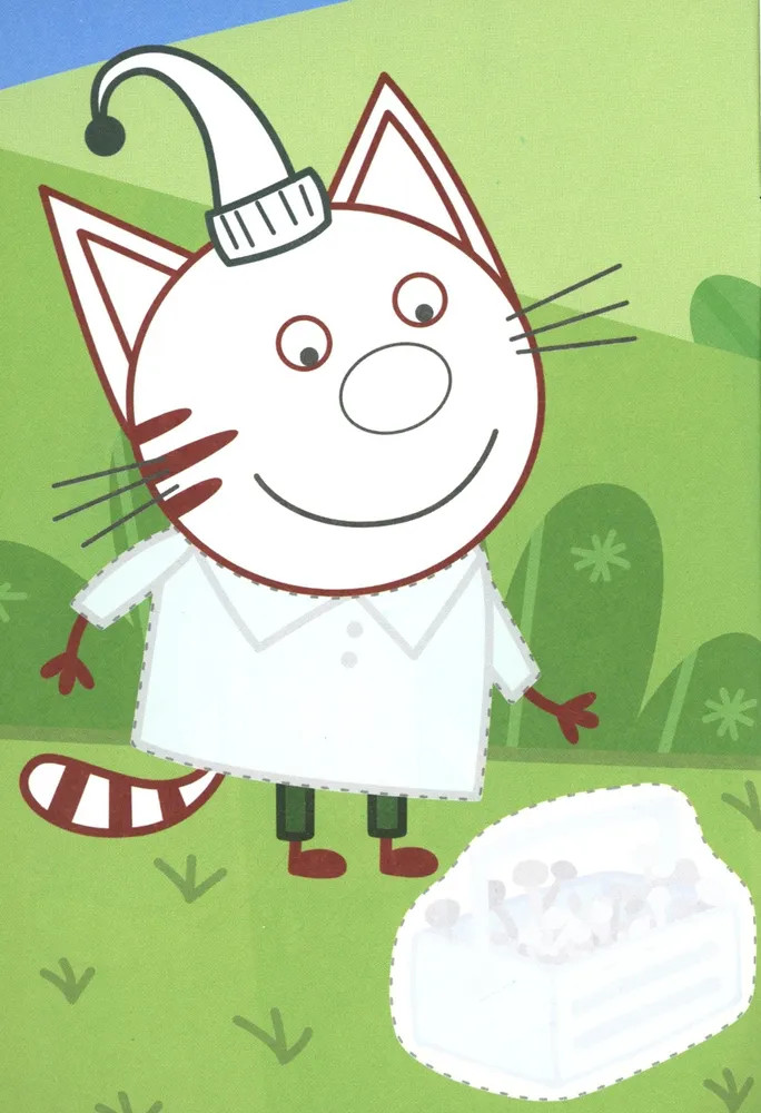 Три кота. Домик на дереве. Аппликация-раскраскановинка