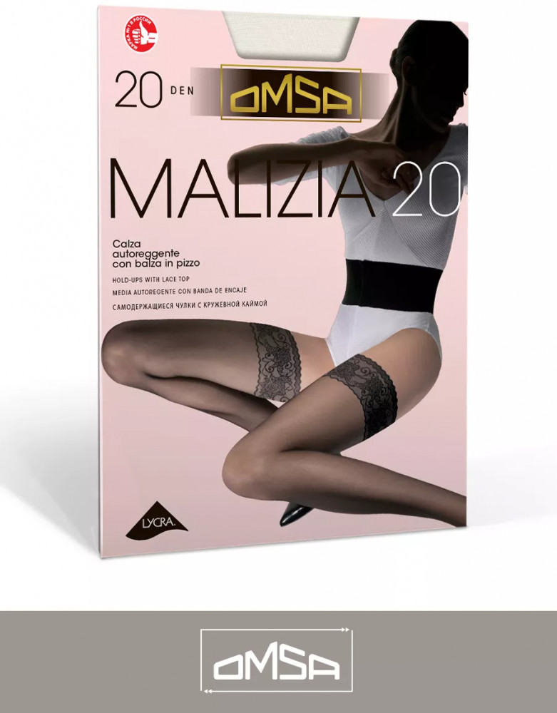 Чулки женские капроновые Omsa «Malizia» 20 den — тонкие, эластичные чулки с изысканной кружевной резинкой на силиконовой основе.