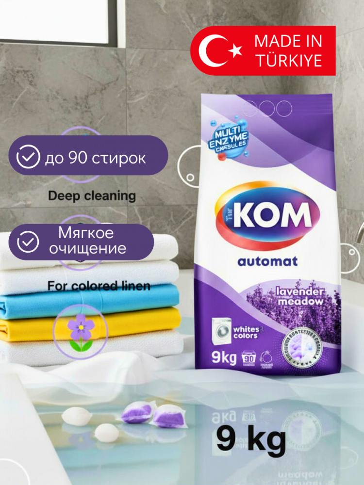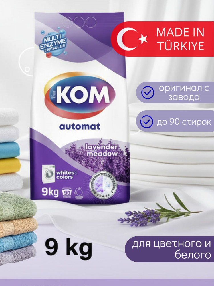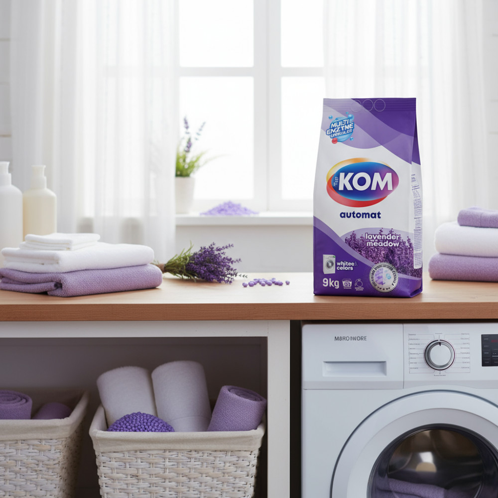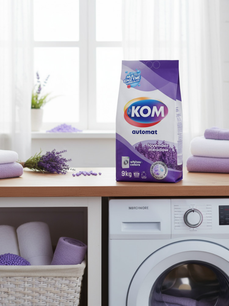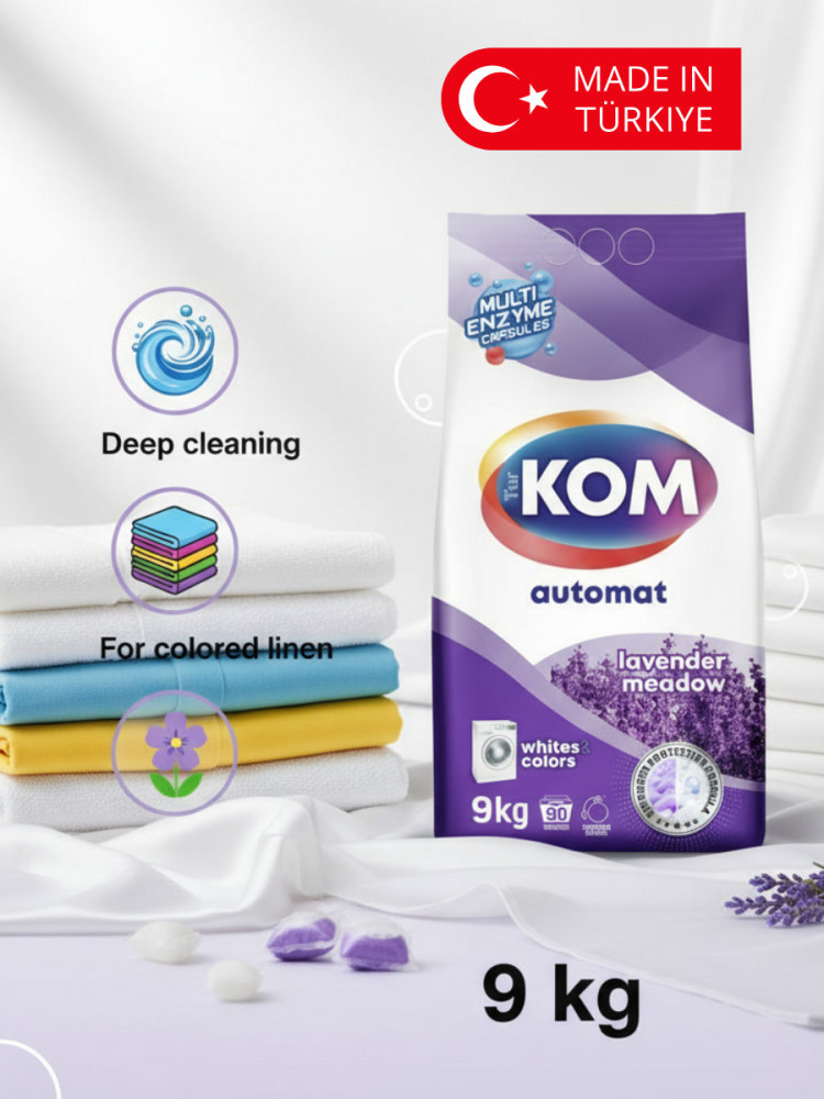 Представьте: вы открываете машинку — и навстречу тёплое дыхание свежей лаванды. Бельё мягкое, светлое, без намёка на серость. Именно так работает TurKOM — универсальный стиральный порошок, созданный для идеальной стирки.