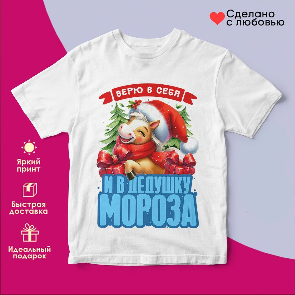 TopPoshiv Футболка с принтом «Верю в себя и в деда Мороза 2026»
