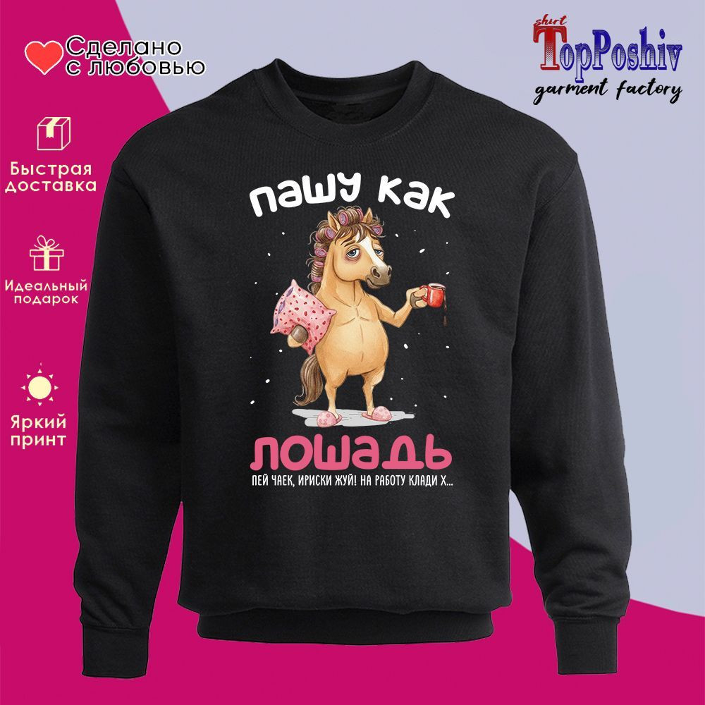 TopPoshiv Свитшот с принтом «Пашу как лошадь»
