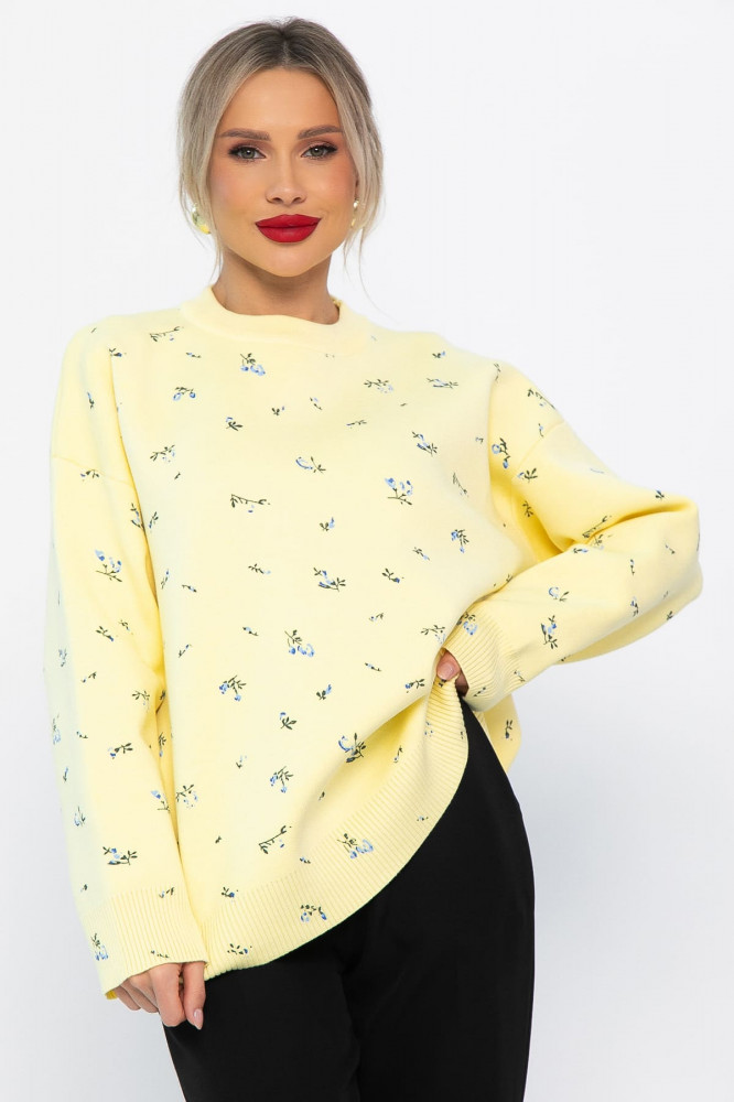 Вязаный женский свитер с цветочным принтом — отличное дополнение к вашему гардеробу. Модель изготовлена из невероятно мягкого трикотажного материала. Свободный крой не ограничивает движения и придает стильный силуэт. Этот цвет прекрасно сочетается с большинством базовых вещей: будь то классические джинсы, комфортные брюки или любимые юбки и шорты. Цветочный принт добавляет образу утонченности и легкости, превращая обычный свитер в яркий акцент. Такой свитер станет незаменимым спутником в учебе, на работе, встречах с друзьями, прогулках на свежем воздухе и дома. Он позволяет создавать разнообразные образы, обеспечивая тепло и свободу движений каждый день.