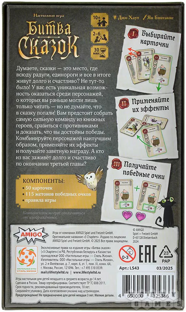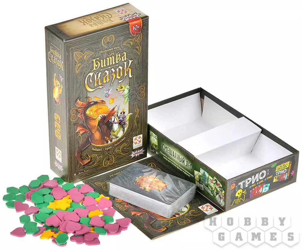 Стиль Жизни Игра настольная «Битва сказок»новинка В данный момент этот товар отсутствует в продаже. Возможно, у нас найдется аналогичный или похожий товар здесь. В карточной настольной игре «Битва сказок» вам предстоит собрать самую сильную команду героев самых различных сказок. Это могут быть волшебные животные, королевские особы, магические персонажи и даже монстры со злодеями! У каждого персонажа есть сильные и слабые стороны в виде уникальных способностей и числовых значений. А ещё герои одной сказки лучше работают в команде, учитывайте это при формировании своей сказочной команды. Попробуйте завершить третью главу своих приключений с наибольшим количеством очков и станьте победителем! |
