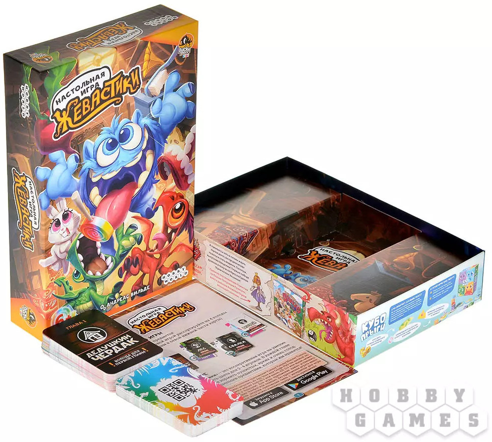 «Жевастики» — это весёлая и красочная кооперативная игра, которая превратит изучение цветов в увлекательное приключение. Ваша задача — накормить прожорливых, но очень симпатичных созданий, подобрав для них идеальное угощение. Для этого нужно смешивать цвета карт с едой, чтобы получить нужный оттенок, а затем проверить свой выбор через специальное приложение — оно подскажет, угодили ли вы жевастику! Игра отлично подходит для детей и всей семьи: партии проходят быстро, правила простые, а яркие иллюстрации и интерактивный элемент делают процесс ещё интереснее. Здесь есть всё — и азарт, и обучение, и море позитивных эмоций. Готовы ли вы к встрече с этими милыми обжорками?