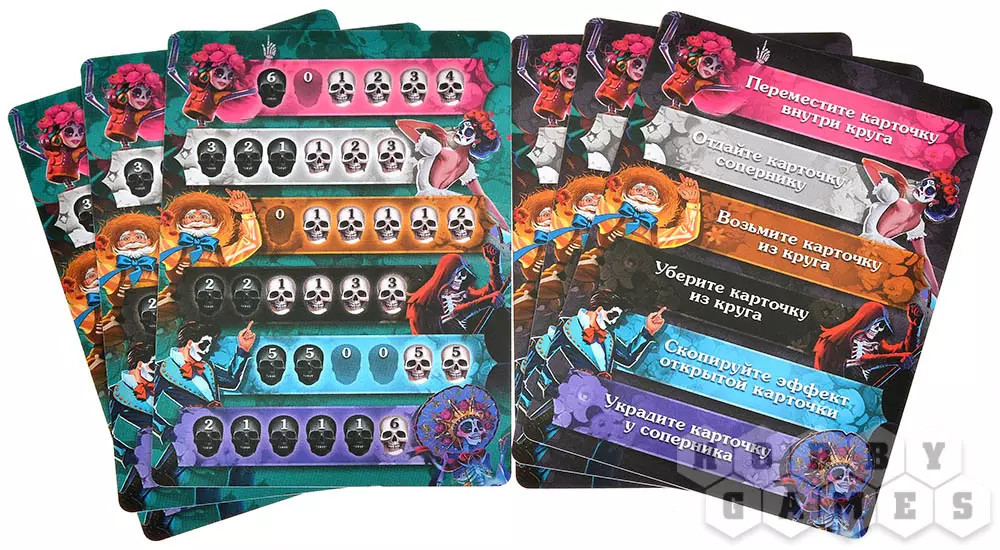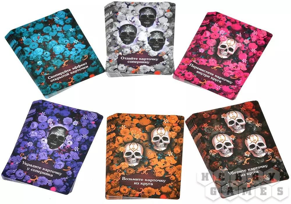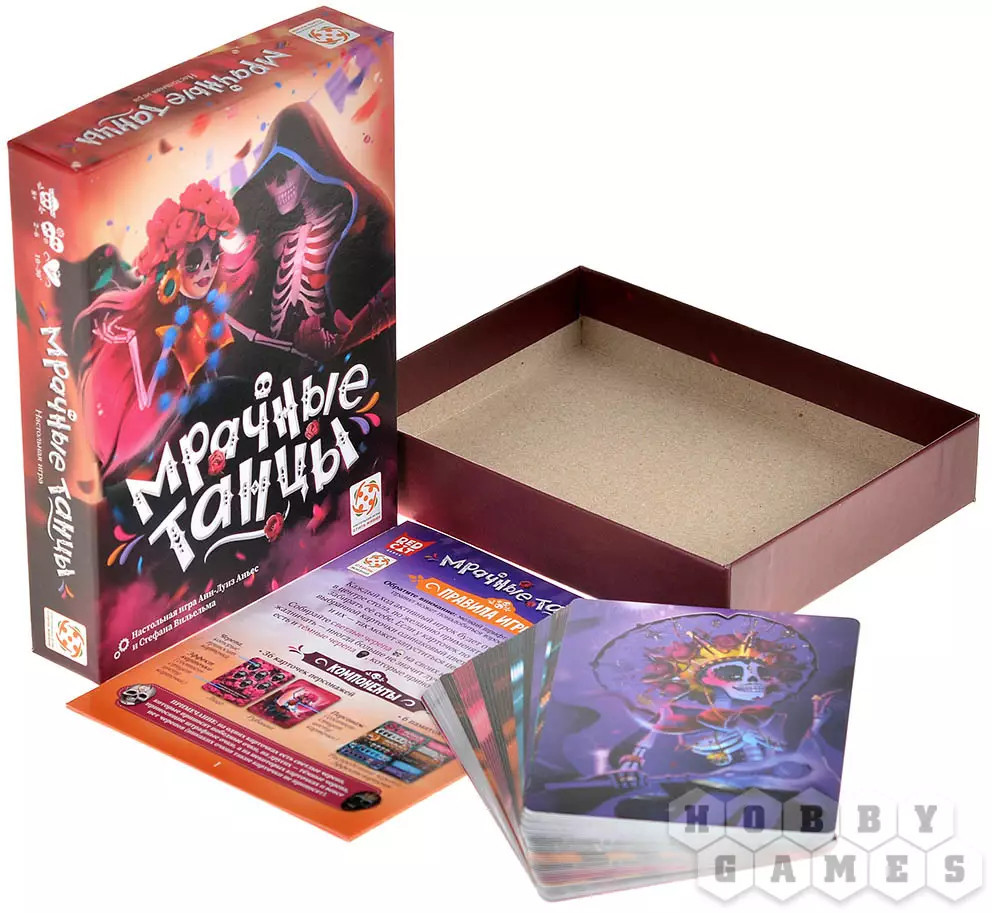 Стиль Жизни Настольная игра «Мрачные танцы»новинка В данный момент этот товар отсутствует в продаже. Возможно, у нас найдется аналогичный или похожий товар здесь. «Мрачные танцы» — настольная игра, в которой вы станете участником таинственного празднества, где каждая карта не просто фигура, а живой персонаж со своей историей и силой. В основе игры лежит управление картами, выложенными в круг, каждая из которых имеет уникальный цвет и эффект: вы можете копировать способности, обмениваться картами, красть их, или даже устранять их из игры. Особое внимание заслуживают иллюстрации, которые погружают в мрачно-сказочную эстетику праздника, а качество компонентов гарантирует удовольствие от каждой партии. |