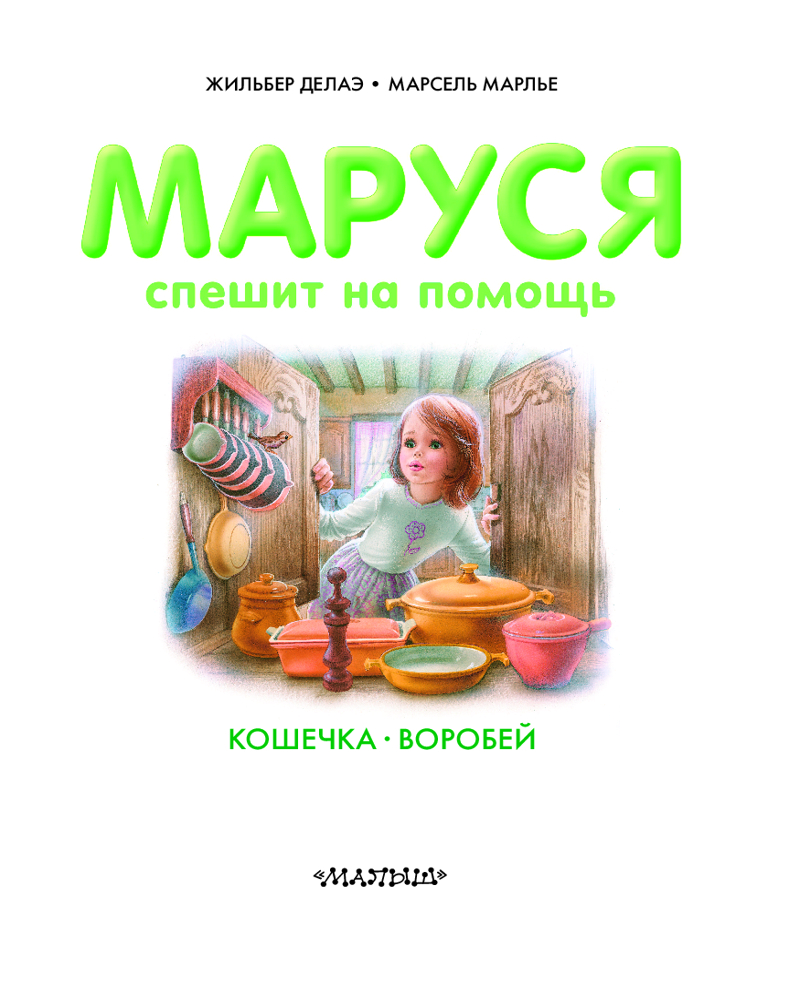 Серия «Приключения Маруси» — это уникальный издательский проект, который стал бестселлером сначала во Франции, а потом и в более чем 50 странах мира! Про весёлую Марусю снимают мультфильмы, которые с успехом идут в России и других странах мира. В книгу «Маруся спешит на помощь. Кошечка. Воробей» вошли две истории об этой доброй девочке. В первой истории Маруся вместе со своим братиком Филей и собачкой Таксиком спасают маленьких котят, а во второй истории выхаживают птенчика, выпавшего из гнезда. Эта книжка научит детей доброте, взаимопомощи и состраданию к животным и покажет им, как можно помочь братьям нашим меньшим. На русский язык книгу пересказала Н. Мавлевич. Для младшего школьного возраста.