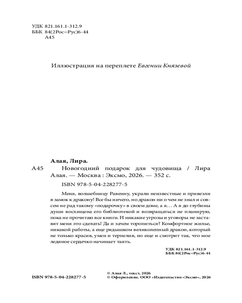 Серия: Самая волшебная ночь Меня, волшебницу Равенну, украли неизвестные и привезли в замок к дракону! Всё бы ничего, но дракон ни о чем не знал и совсем не рад такому «подарочку» в своем доме, а я... А я до глубины души восхищена его библиотекой и возвращаться не планирую, пока не прочитаю все книги. И никакие угрозы и уговоры не заставят меня это сделать! Да и зачем торопиться? Комфортное жилье, никакой работы, а еще рядышком великолепный дракон, который не только красив, умен и терпелив, но еще и смотрит так, что мое ледяное сердечко начинает таять. |