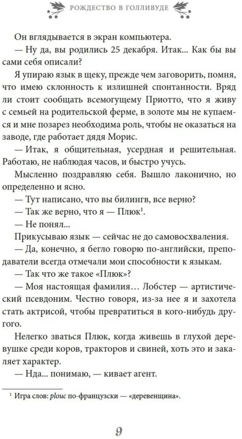Серия: Рождественская история. Горячий шоколад У Элли Лобстер есть заветная мечта: стать известной актрисой и покорить Голливуд. Но разве это так просто, когда живешь в крохотной деревушке во Франции и даже твоя настоящая фамилия переводится как «деревенщина»? И вдруг — о Рождественское чудо — Элли предлагают самую необычную работу: занять место кинозвезды, которой очень уж хочется скрыться на время праздников от папарацци. И не где-нибудь... а в самом Лос-Анджелесе! |