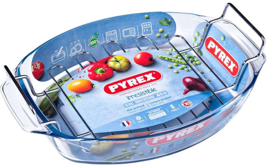 Для любой кулинарной задумки! Блюдо для запекания и выпечки Pyrex Irresistible объёмом 4 литра c решеткой и размерами 38×27×11 см идеально подходит для приготовления различных блюд, включая мясо, птицу или овощи. Изготовлено из высококачественного боросиликатного стекла, которое выдерживает высокие температуры и подходит для использования в духовке, микроволновой печи, холодильнике и морозильной камере.